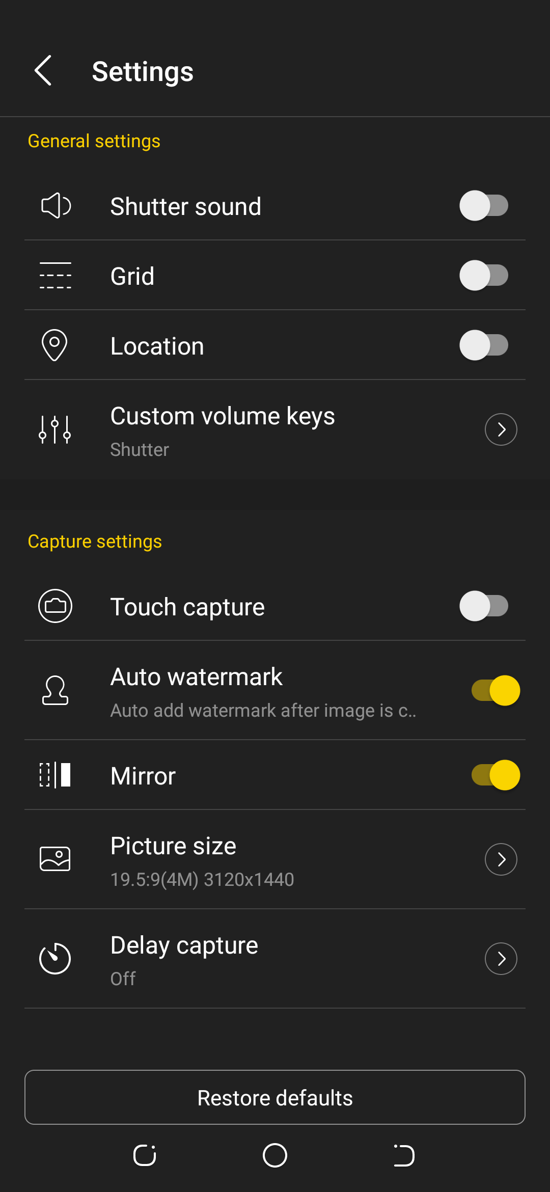Short video allows you to stake short videos of about 14 seconds. The camera settings has the usual features – location, watermark, picture size etc.