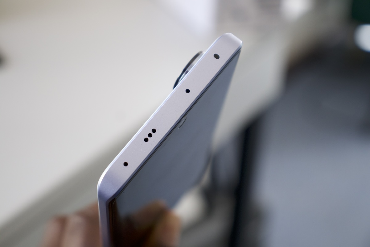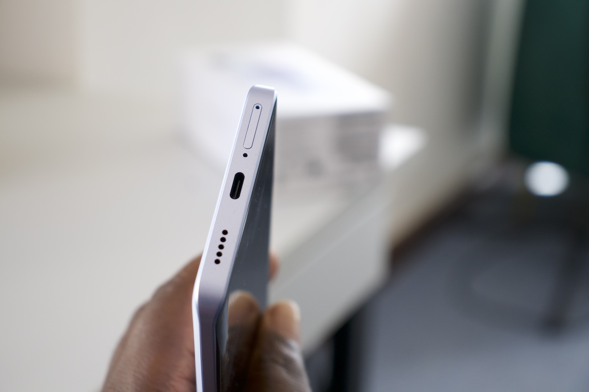 There is no 3.5mm audio port and the speaker, SIM card tray, and USB-C port are all at the bottom. The power and volume buttons are on the right.